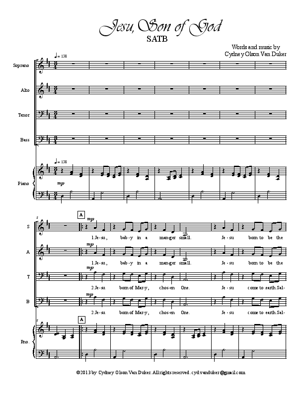 . This joyous lullaby is easy and fun to sing. The women sing the first verse, the men sing the second verse and everyone sings the third verse and choruses. This song celebrates the birth of Jesus; born in a manger, the Chosen One, the Son of God; and siMore Info