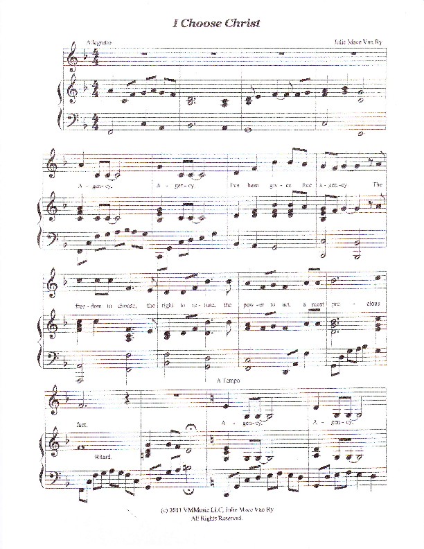 This song, “I Choose Christ” , teaches us that we have the freedom to choose right from wrong, good or bad. Our agency is a powerful blessing from our Heavenly Father. A recording of this song can be found on YouTube. Go to YouTube.com, search “I ChoosMore Info