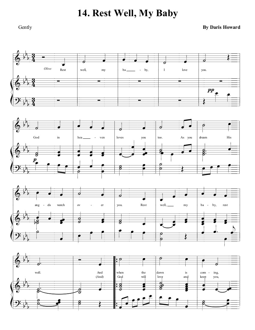 As you dream, His angels watch over you. Rest well, my baby, rest well. Olive: Rest well, my baby, rest well.