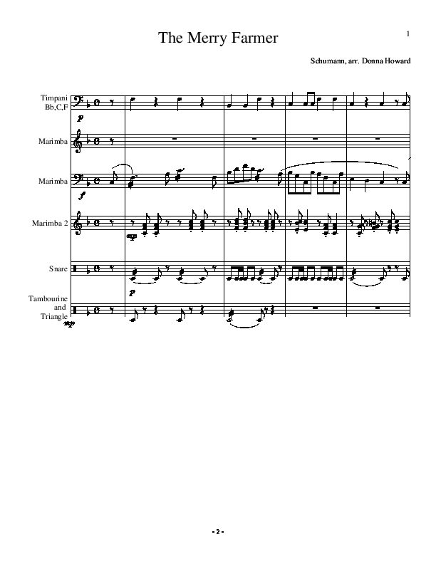 This is a simple piece, well-known, and arranged for percussion ensemble. Cheerful and upbeat, this is short but fun. Marimba, snare, tymp, triangle, tamb.